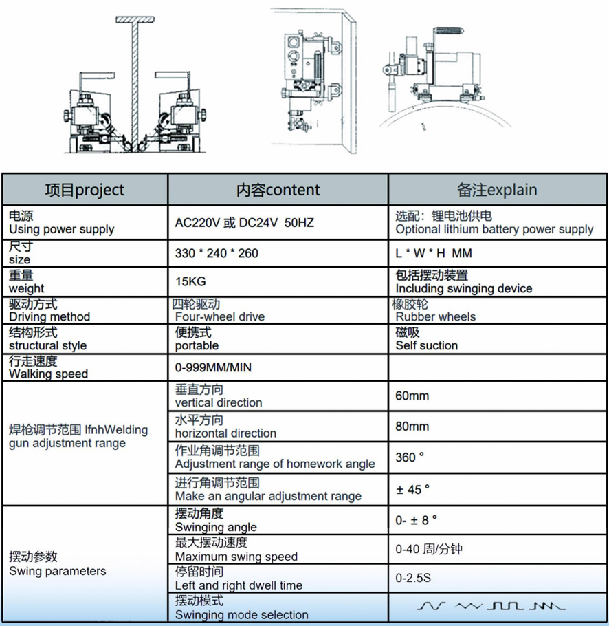 2. The swing speed, swing range, center position, and left and right stays can be adjusted, suitable for various specifications of welding channels.